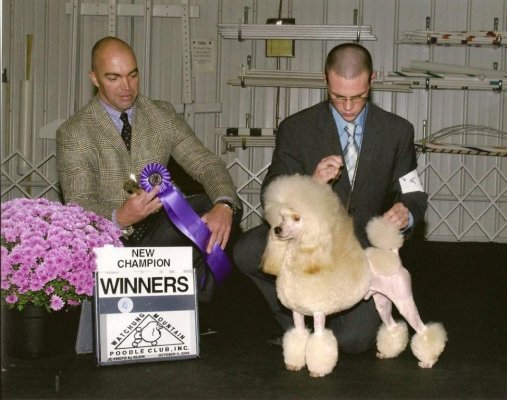 Logan is now a champion! Co owned and shown by Kirk Herrmann. Logan finished at Watchung Mountain Poodle Specialty.